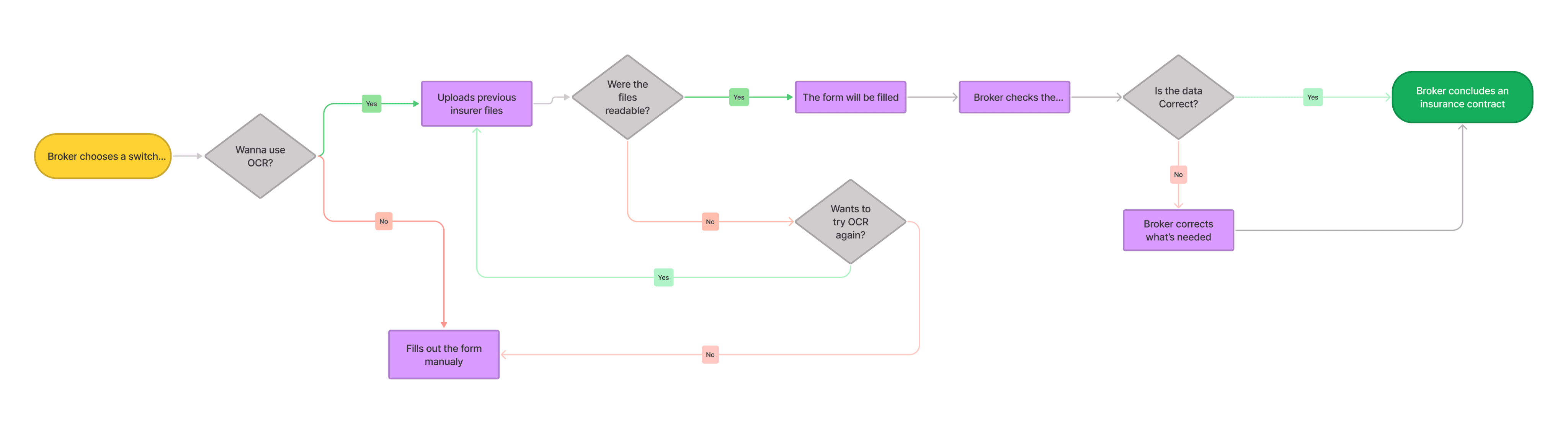 We assumed that enabling brokers to upload this document at the first step would save time and improve data quality by analysing previous insurer documents using OCR and filling switch forms with data for the broker to review.